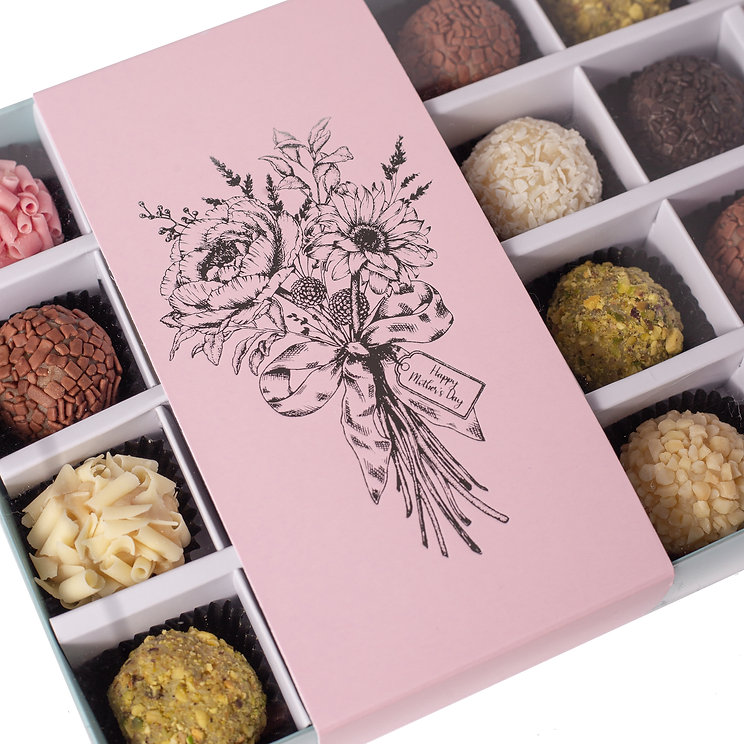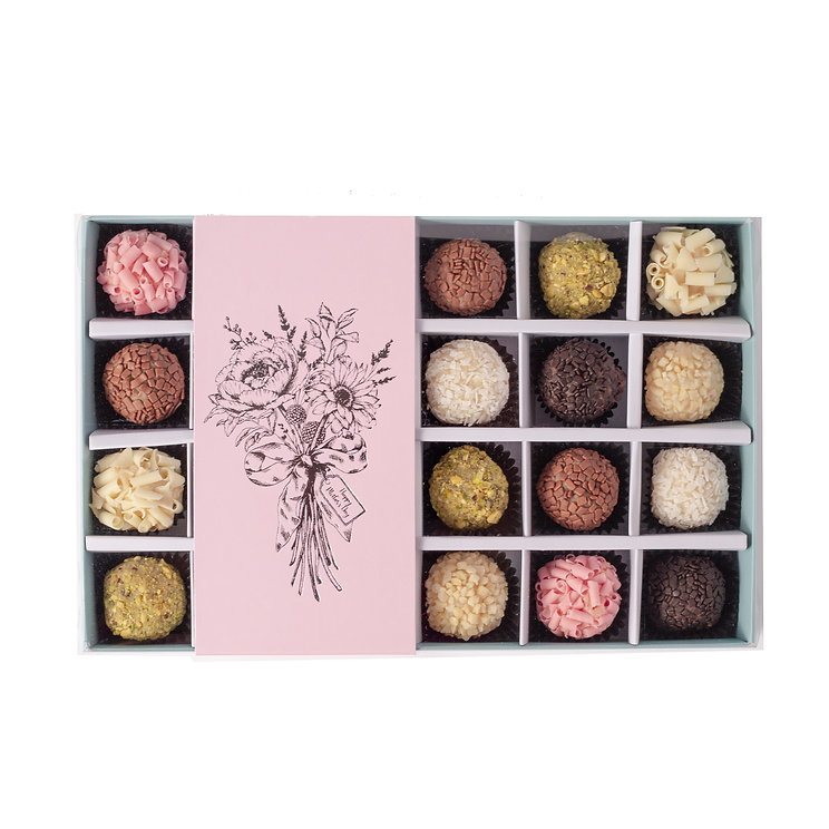 Box of 24 Brigadeiros-Mother’s Day-pink band, turquoise box
