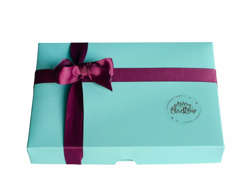 Box of 24 Merry Christmas with Burgundy Ribbon